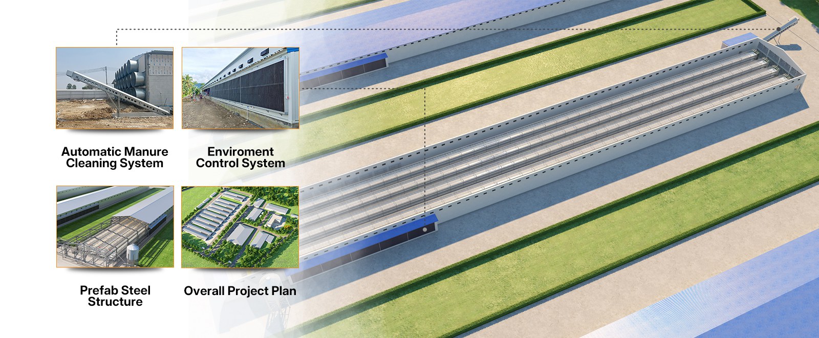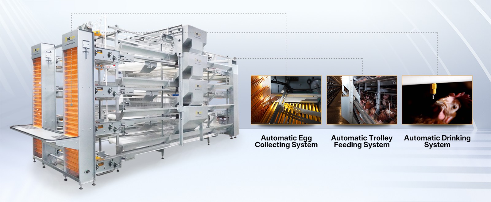 Full Automatic Supporting System——automatic feeding,drinking, manure cleaning, egg collecting and control environment. RETECH can meet all the needs of your farm.